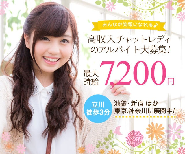 チャットレディは、OLさんや学生さん、主婦の方、様々な女性がいらっしゃいます。 働き方は自由です。「金欠だから1日だけお仕事したい」、「学校終わりの空いている日だけ」、 「お仕事帰りに数時間だけ」、「子供を預けている時間を利用して」と自分の都合で気軽にお仕事ができます。